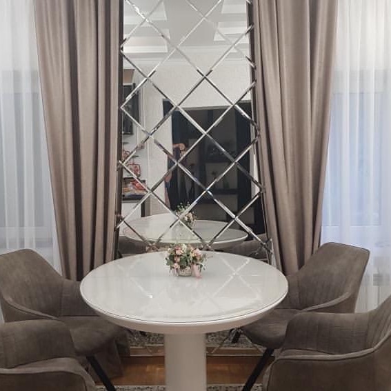 Зеркальное панно в столовой – это признак хорошего вкуса и практического мышления. Такой декор поднимает настроение, а зеркало отражает с любовью сервированную еду. Ведь всем известно, что хорошего должно быть больше, хотя бы в отражении!