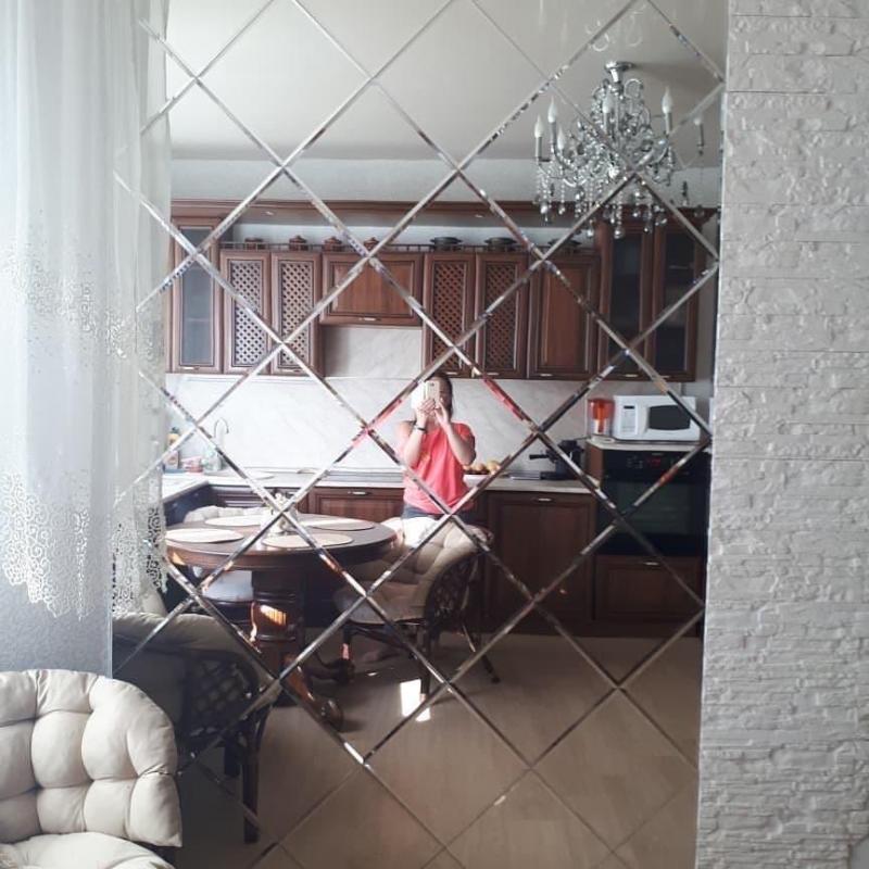 Использована серебряная зеркальная плитка «вытянутый ромб».